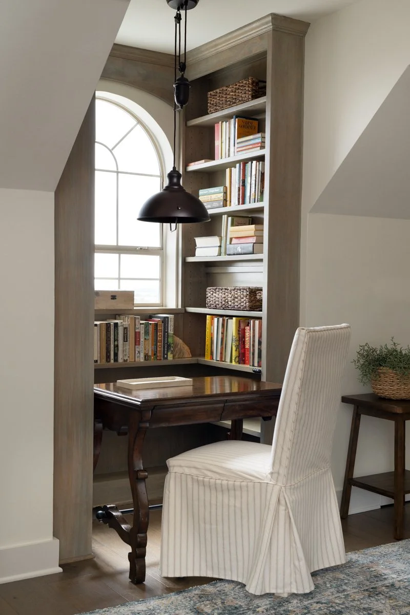 The newly softened palette continued into this room with soft white walls and matching trim.