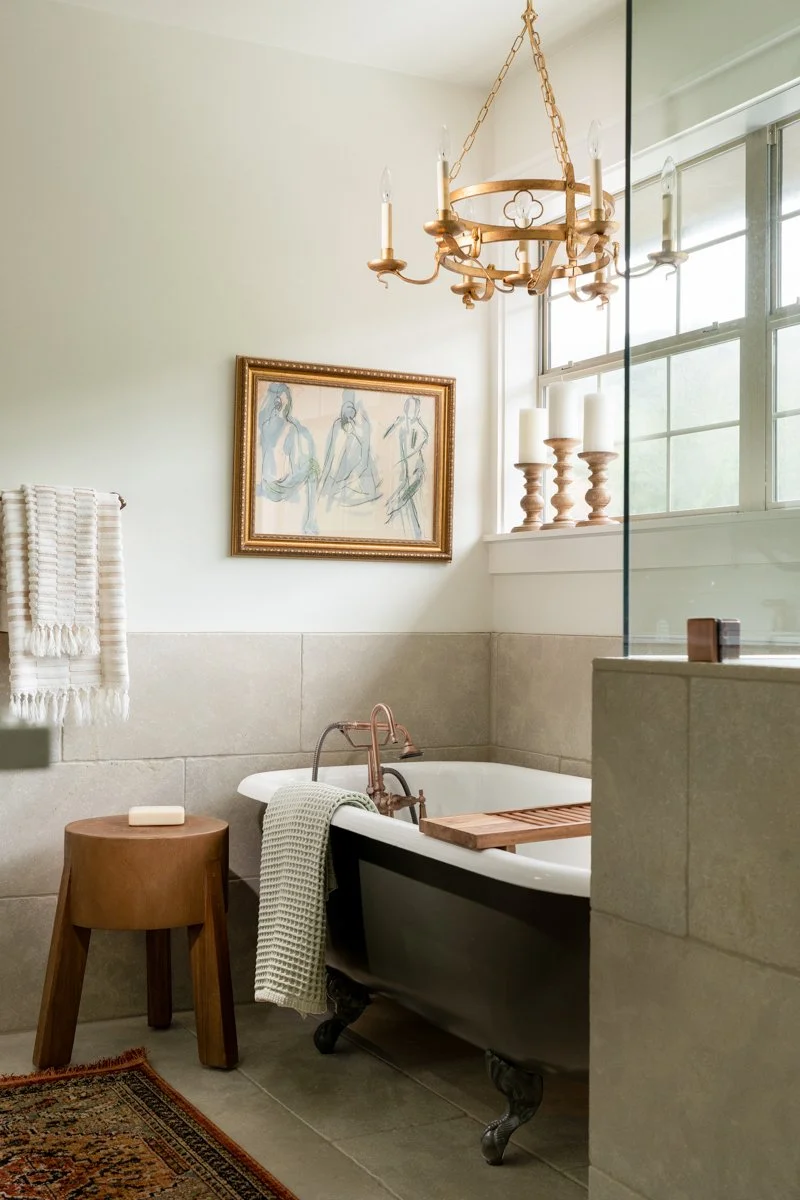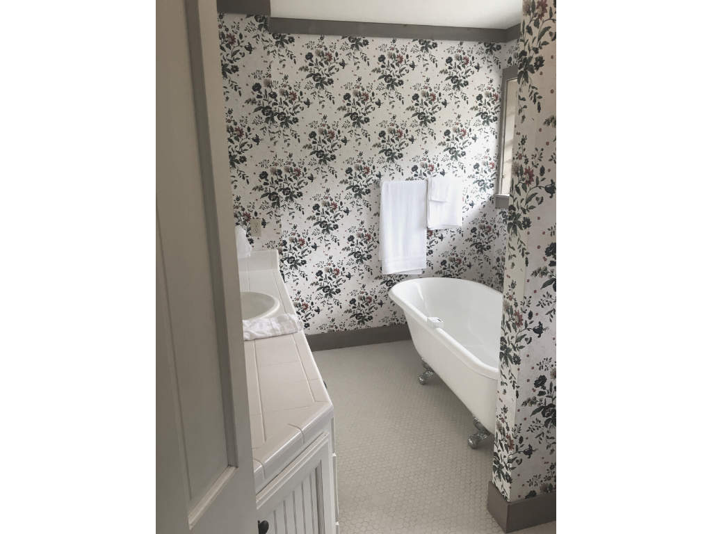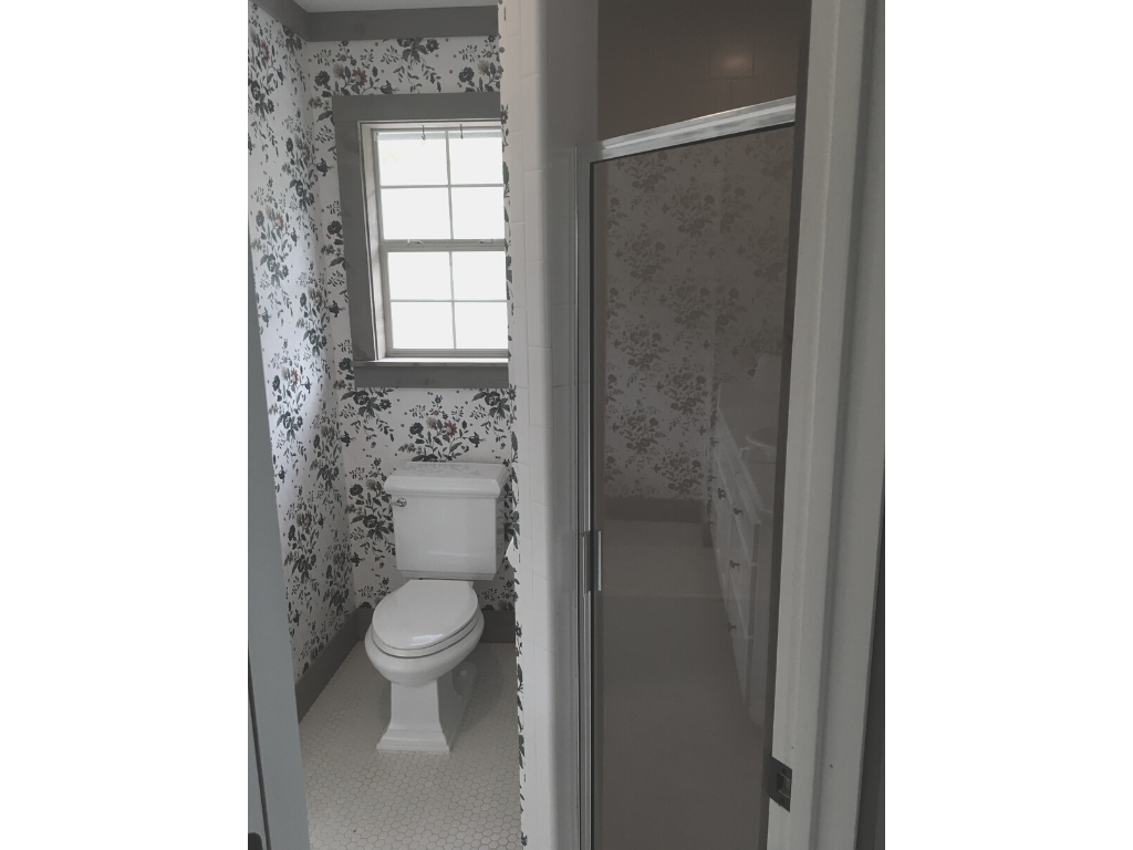 The sink and tub locations remained in place but we reconfigured the rest of the bathroom to allow more natural light, a better flow, and privacy.