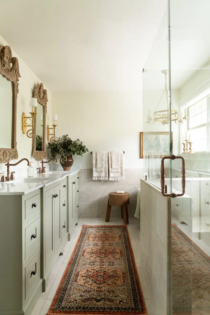 Melissa scored this incredible pair of antique frames which we had replaced with mirrors for that always-been-here feel.